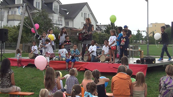 Ausserdem mache ich seit 2007 auch Musik in Kindergärten, Schulen, Unterkünften für Geflüchtete. Es ermöglicht mir familienfreundliche Arbeitszeiten zu haben und mit den eigenen Musikprojekten kommerziell unabhängig zu bleiben. Und es ist toll, mit Kindern aus aller Welt in Frankfurt Musik zu machen, ich habe dabei einiges über Entertainment gelernt :-)